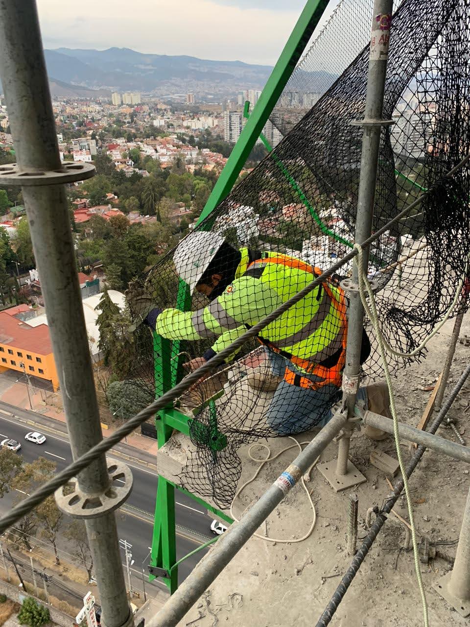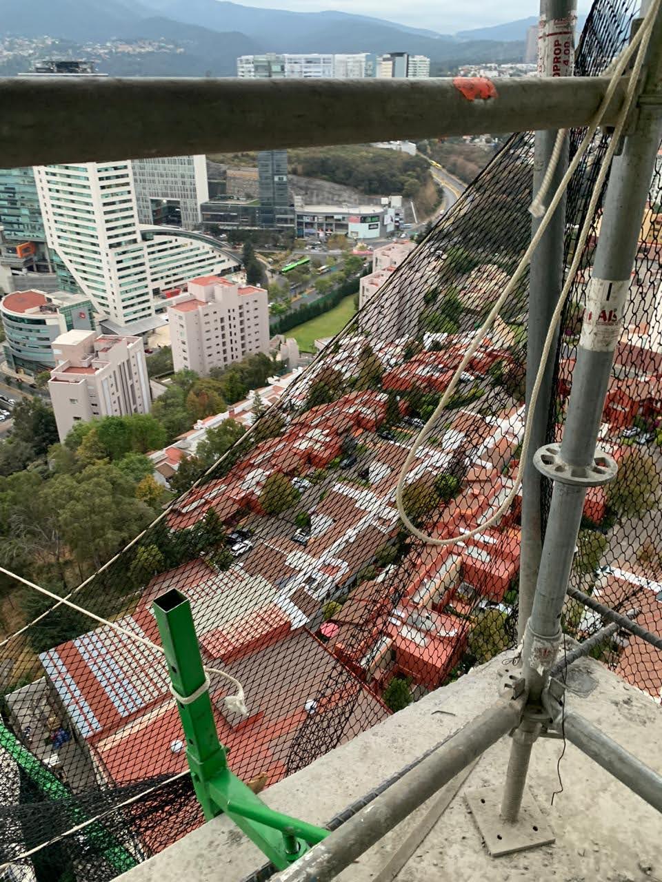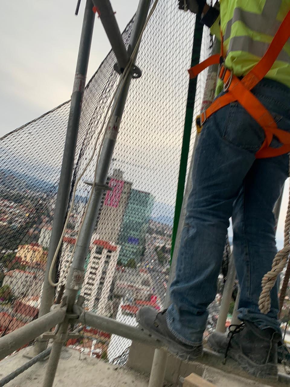 Estuvimos a cargo de la colocación de redes anticaidas en la modalidad del sistema tipo s, que consta de redes con cuerda perimetral dispuestas en modo horizontal, que en el sentido estricto no evita la caída de objetos o personas pero funciona muy bien como un mecanismo que interrumpe y amortigua la caída a cierto nivel de altura por encima de su superficie.