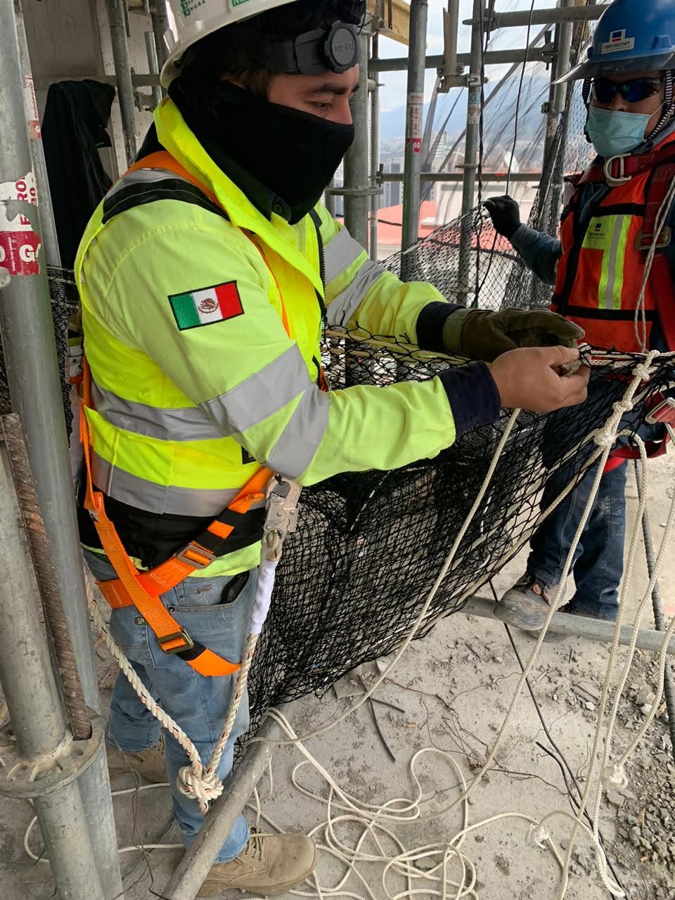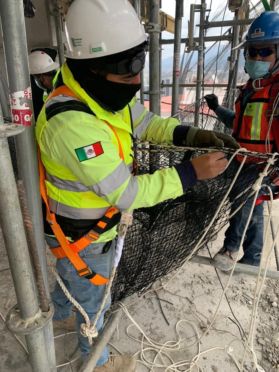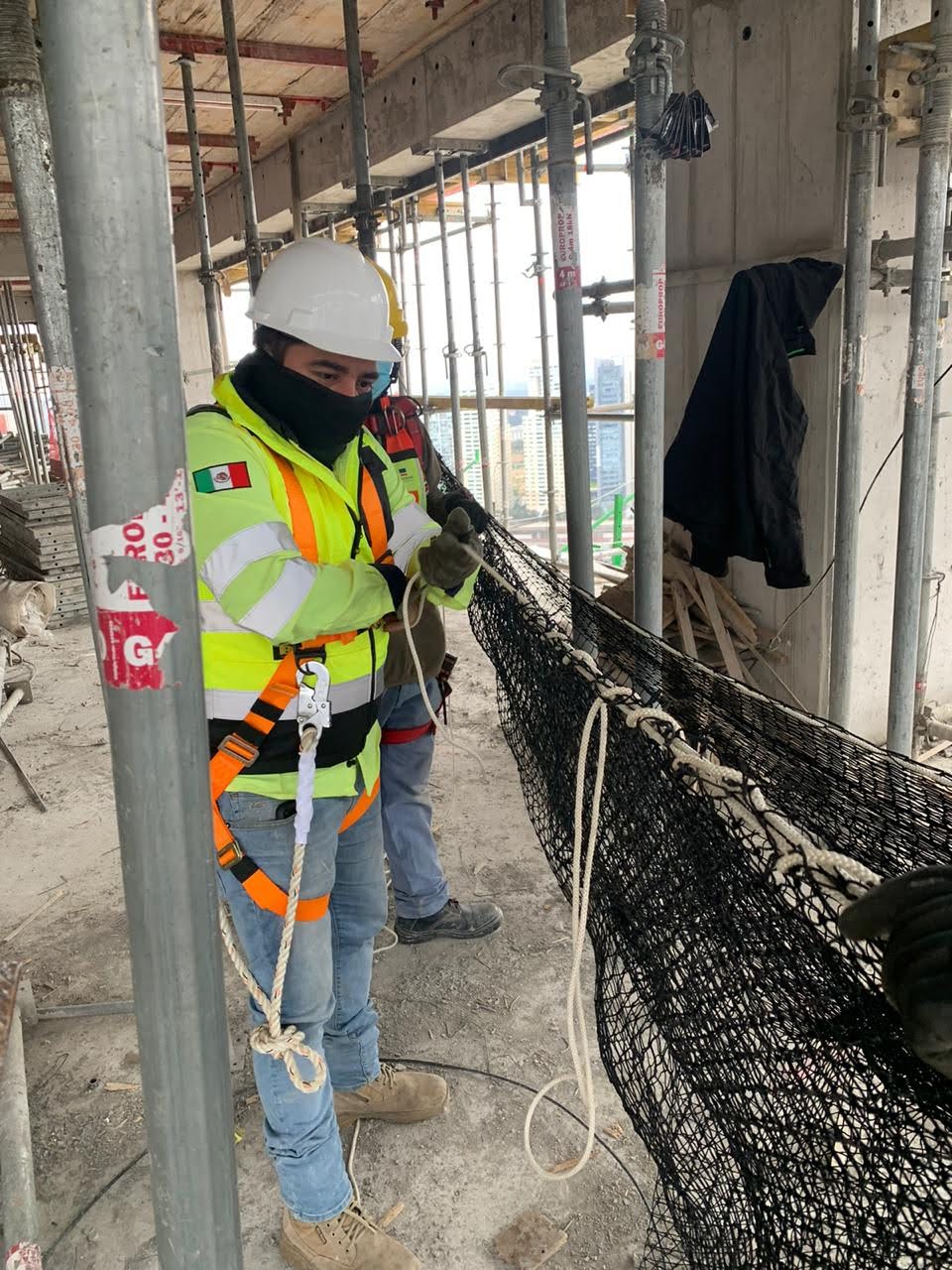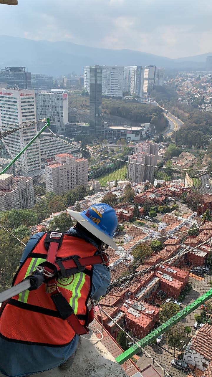 Estuvimos a cargo de la colocación de redes anticaidas en la modalidad del sistema tipo s, que consta de redes con cuerda perimetral dispuestas en modo horizontal, que en el sentido estricto no evita la caída de objetos o personas pero funciona muy bien como un mecanismo que interrumpe y amortigua la caída a cierto nivel de altura por encima de su superficie.