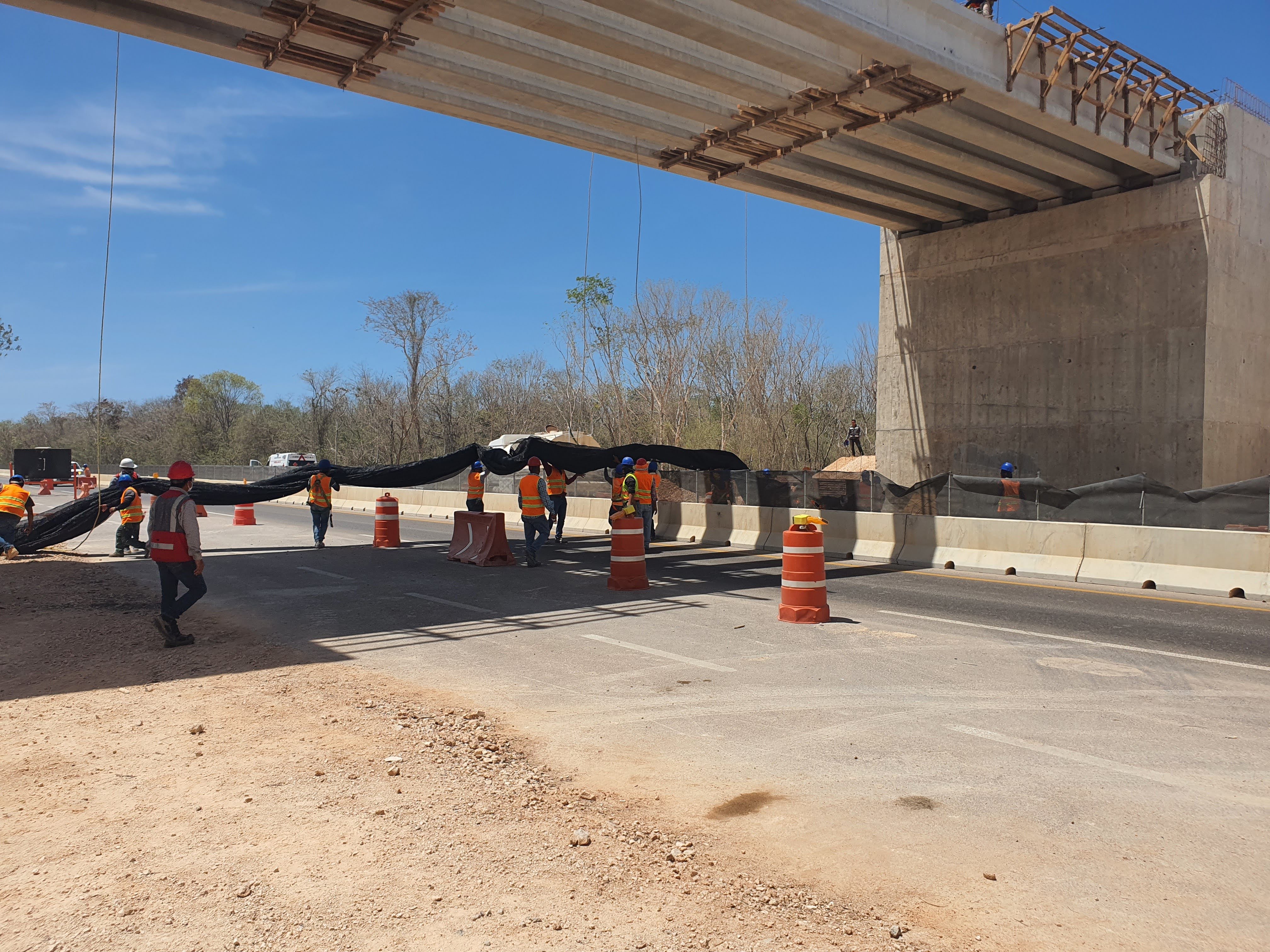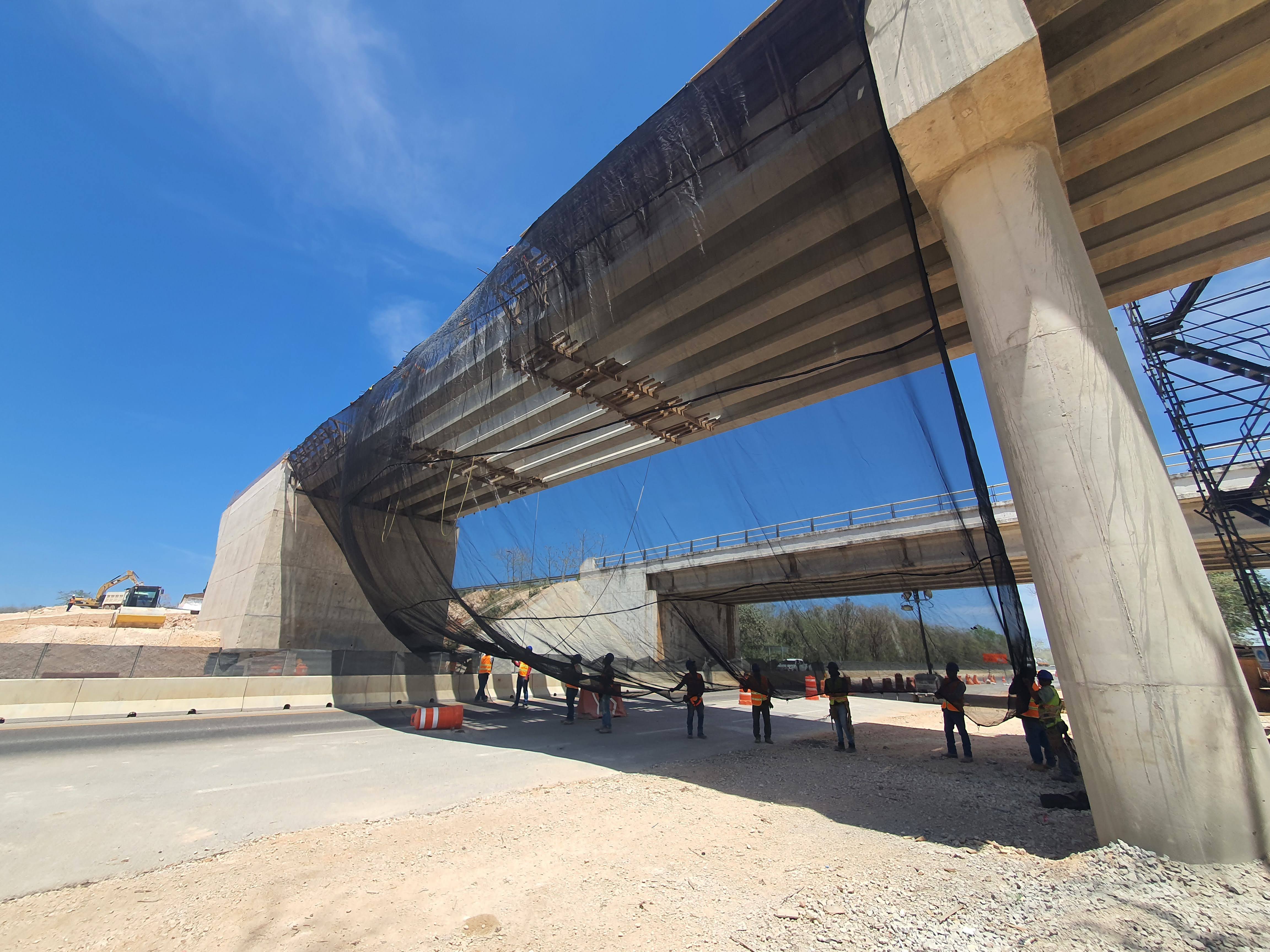 Se generó un entorno de trabajo seguro en la zona de maniobra del Tren Maya. El sistema permitió continuar labores sobre el tablero mientras el tránsito vehicular y personal trabajaba con protección total en el nivel inferior. Esta instalación demostró la efectividad de las redes anticaídas de tipo S como solución práctica y reutilizable para obras de infraestructura pesada.