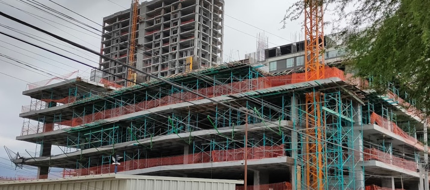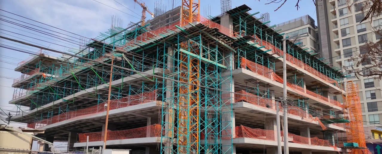 Mallas Anticaidas, formando parte de este complejo Héroes 47 en Monterrey Nuevo León, brindando seguridad colectiva a los trabajadores de altura.