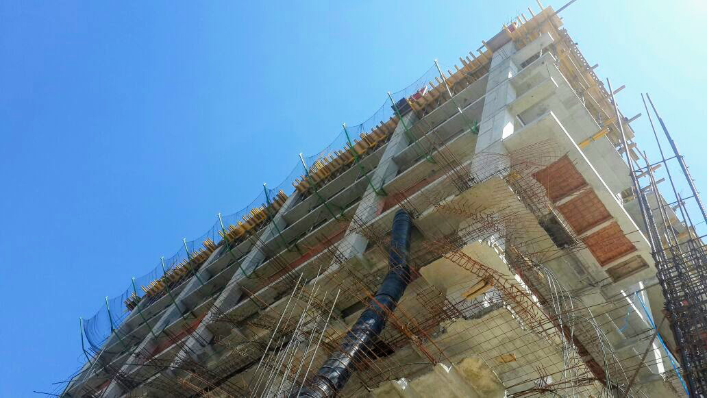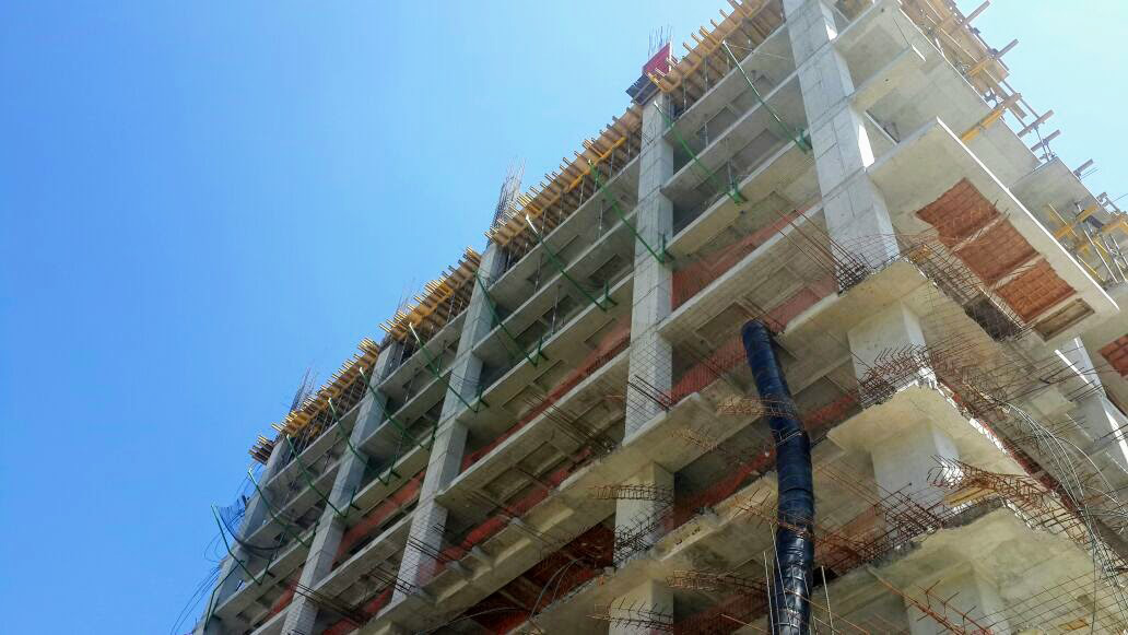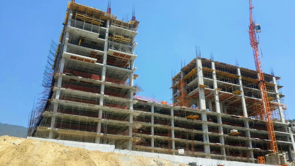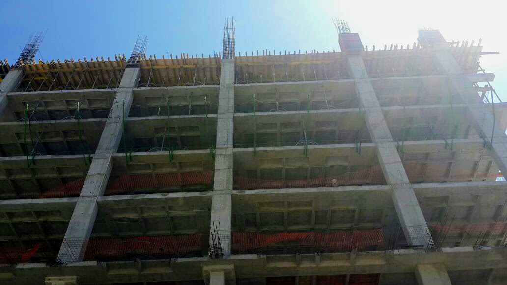 No dirigimos hasta la Torre Jade en pleno proceso constructivo nos requirieron para el montaje del sistema tipo T, bandejas al exterior con mallas anticaídas para cubrir el perímetro de toda la torre, el cual consta de 209 metros lineales de perímetro la primera torre y 96 metros la segunda.