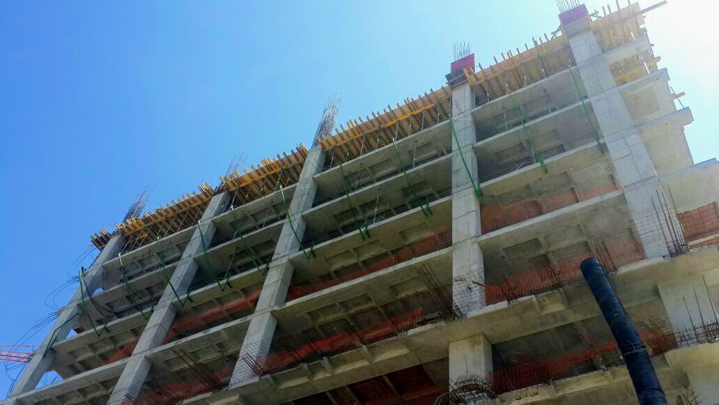 En esa etapa del proyecto ya comenzaban a realizar algunos trabajos de acabo el el edificio inferior el cual se convertiría en un centro comercial y necesitaban cubrir por encima debido a esa etapa de obra.