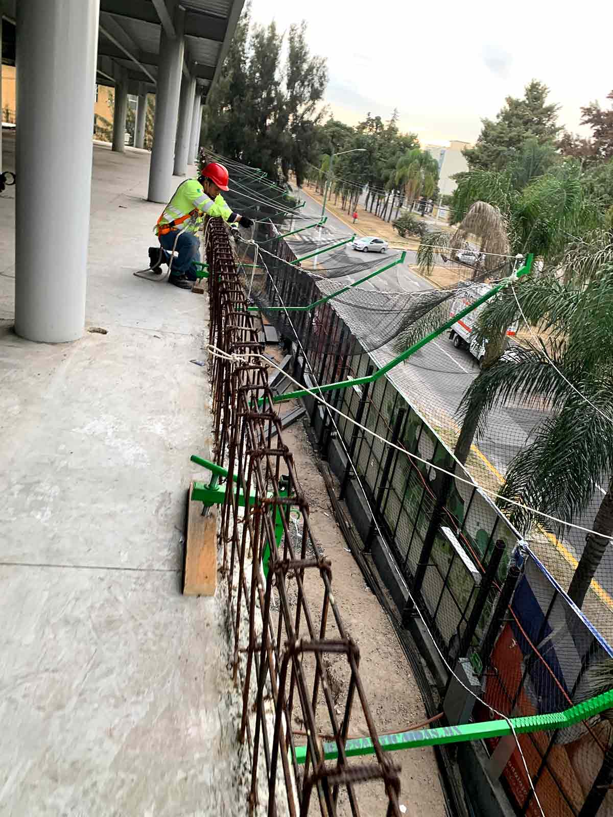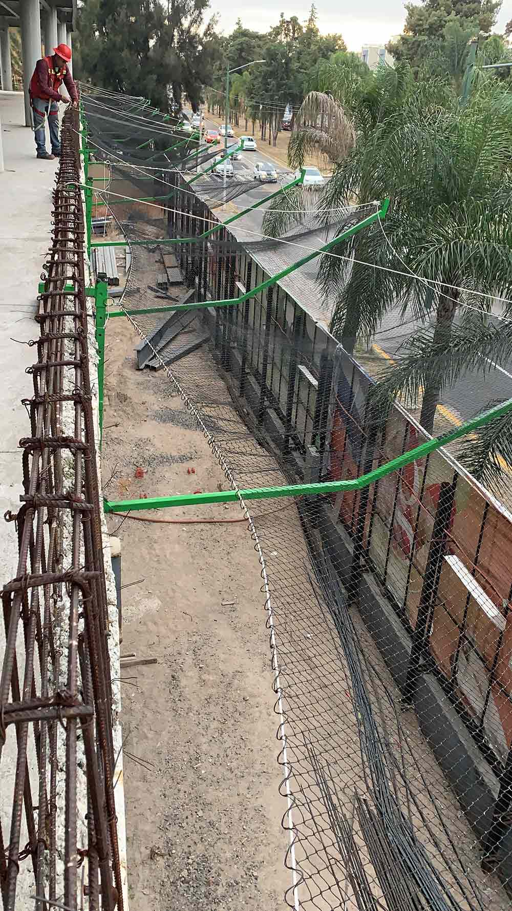 3:00 P.M. Aún no se había terminado la colocación del cable acerado, la red ya se encontraba lista para instalar, completamente marcada con los perros en donde deberían ir las primeras sujeciones a las esquinas y columnas principales.