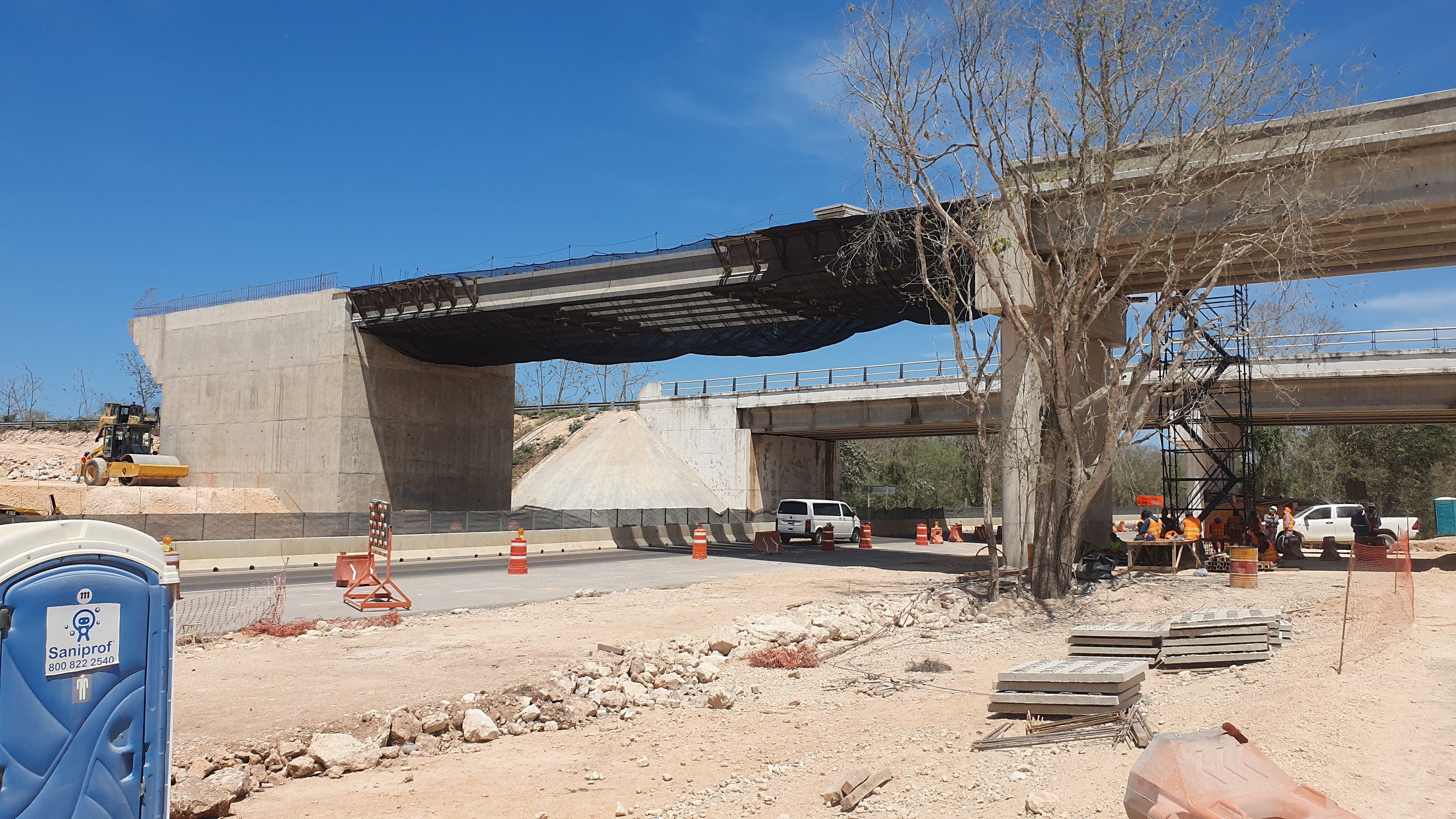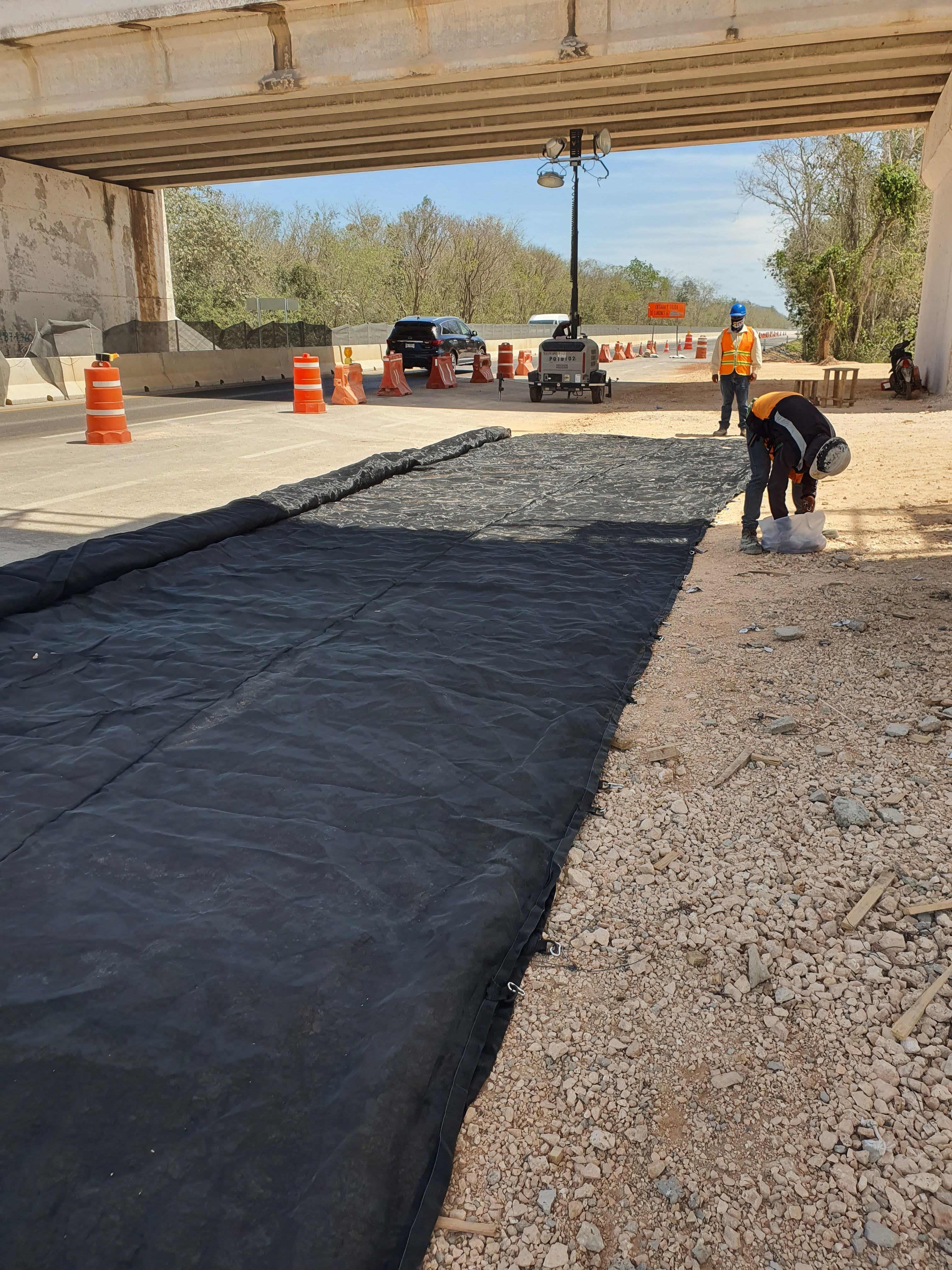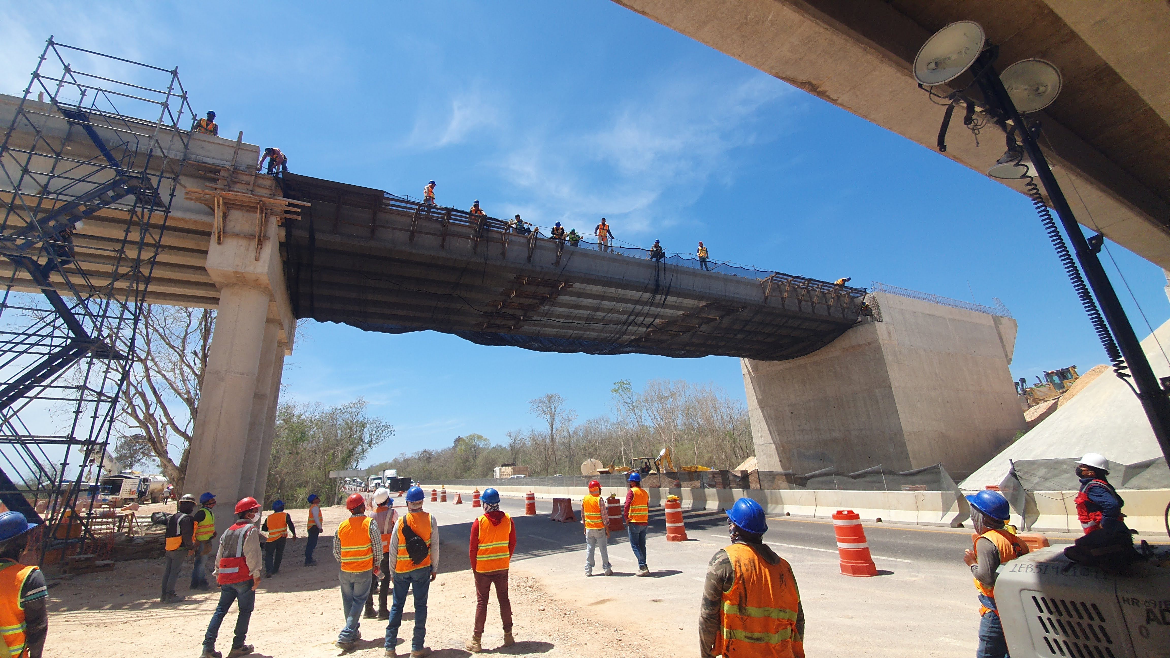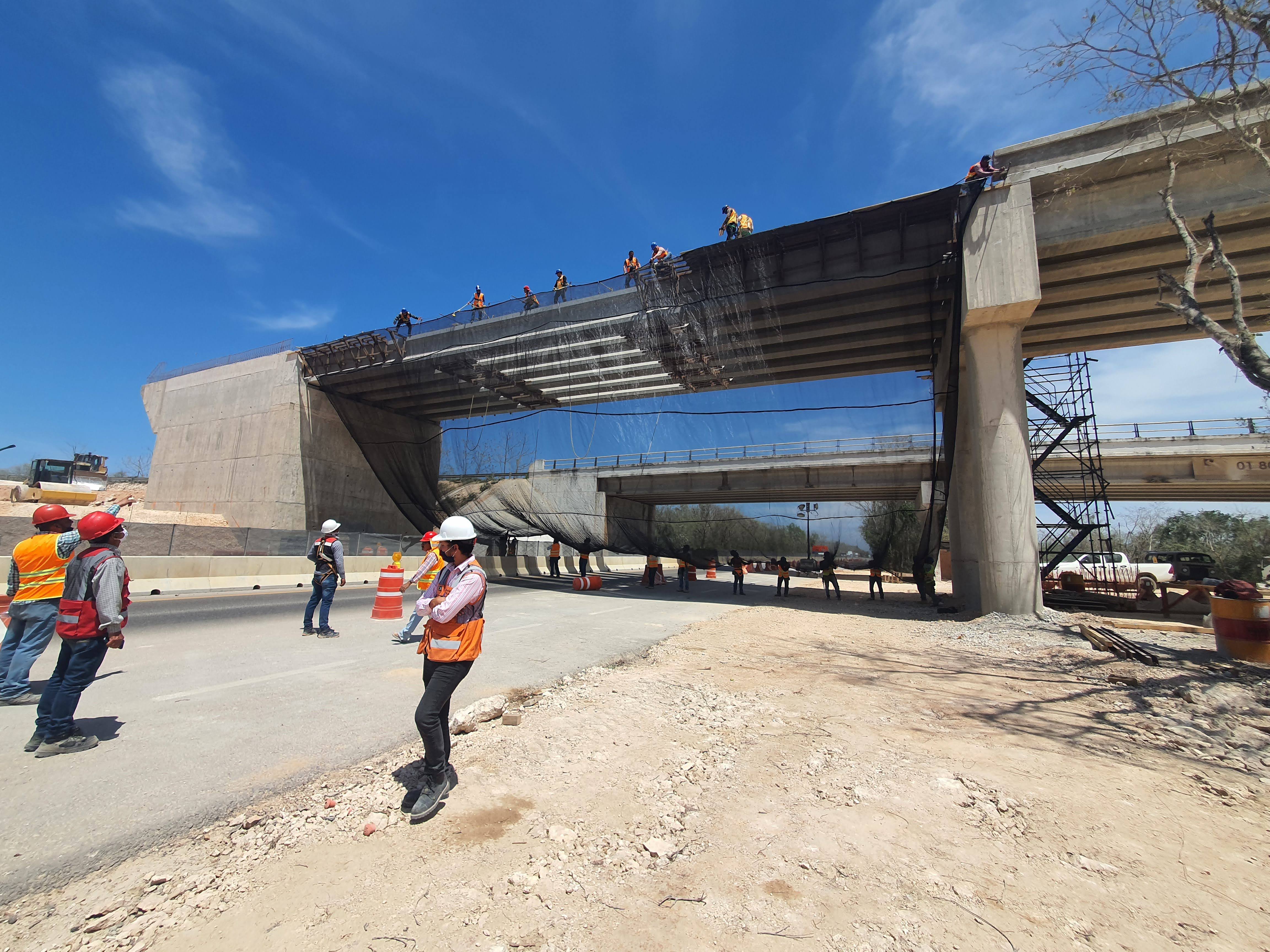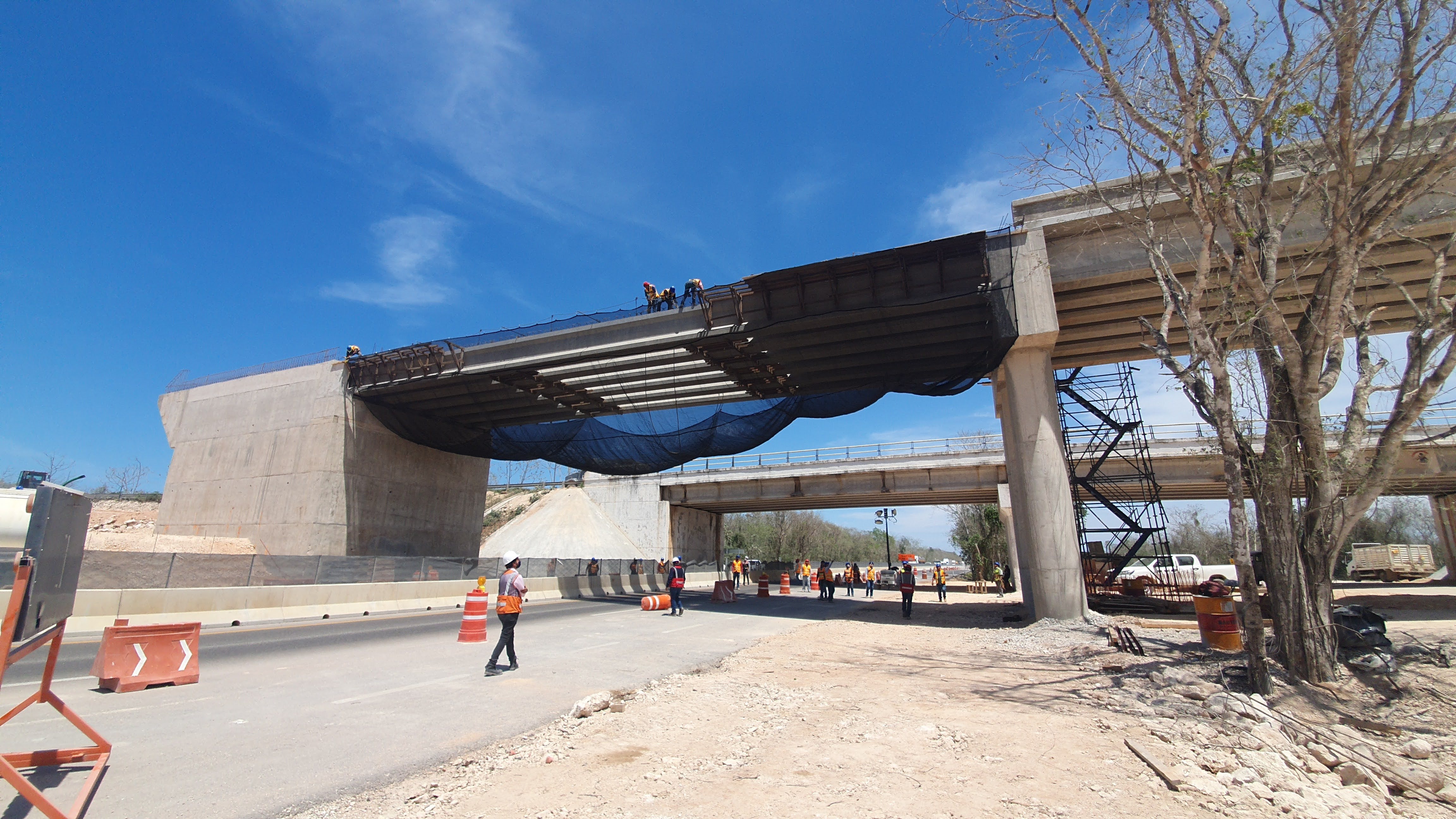 Se generó un entorno de trabajo seguro en la zona de maniobra del Tren Maya. El sistema permitió continuar labores sobre el tablero mientras el tránsito vehicular y personal trabajaba con protección total en el nivel inferior. Esta instalación demostró la efectividad de las redes anticaídas de tipo S como solución práctica y reutilizable para obras de infraestructura pesada.